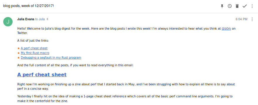 Newsletter! Want to get email when I write new blog posts? This mailing list will automatically email you a list of the latest posts once a week! Subscribe Here’s what the newsletter looks like in your inbox: